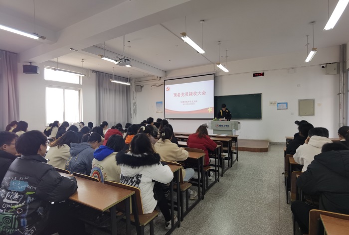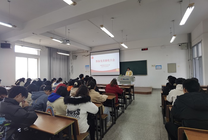 12月8日下午,必赢766net手机版学生党支部在博学楼A404召开预备党员接收大会,共46人参加会议,其中教师党员4人。会议由党支部书记孙静主持。