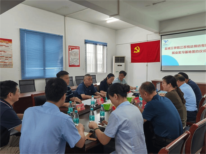 新学期,新征程。为全力推进2024届毕业生高质量就业工作,深化产教融合,校企合作。9月15日下午,必赢766net手机版党总支书记宋孝浜、院长王春霞、副院长马志鹏一行前往江苏悦达棉纺有限公司,江苏悦达家纺有限公司开展“访企拓岗促就业”专项活动暨就业实习基地授牌签约仪式。江苏悦达纺织集团有限公司副总、江苏悦达棉纺有限公司常务副总马春琴,江苏悦达家纺有限公司总经理凡启光等领导参加仪式。学院纺织工程系主任陆振乾、院团委副书记孙静、专业教师崔红、郭岭岭、部分大四毕业生等参加活动。